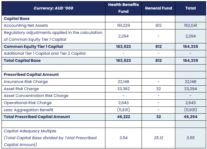 The below table presents Navy Health’s capital adequacy position at 30 June 2025: